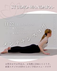 こんにちは!梅田・中崎町最寄りのヨガ・ピラティススタジオSTUDIO-WANDARA-です。